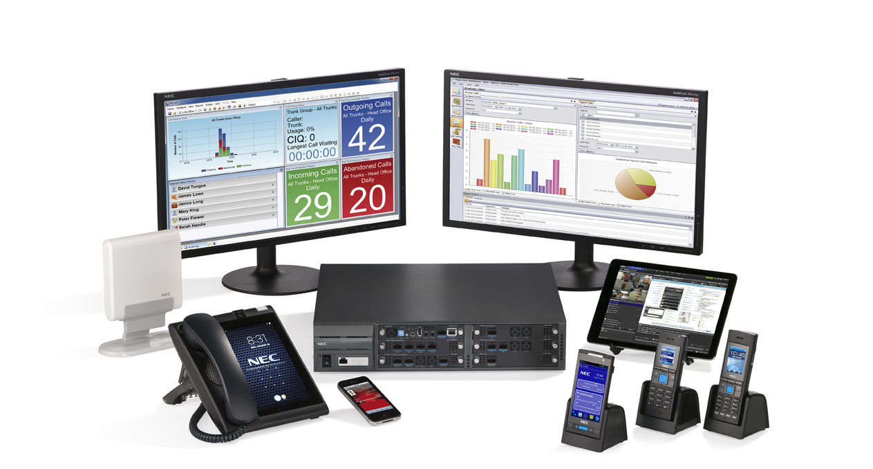 NEC'in geniş terminal ürün ailesi; dokunmatik ekranlı UT880, masaüstü IP telefonlar, DECT telsizler ve Wi-Fi el terminalleri ile her ortama uygun iletişim cihazları.
