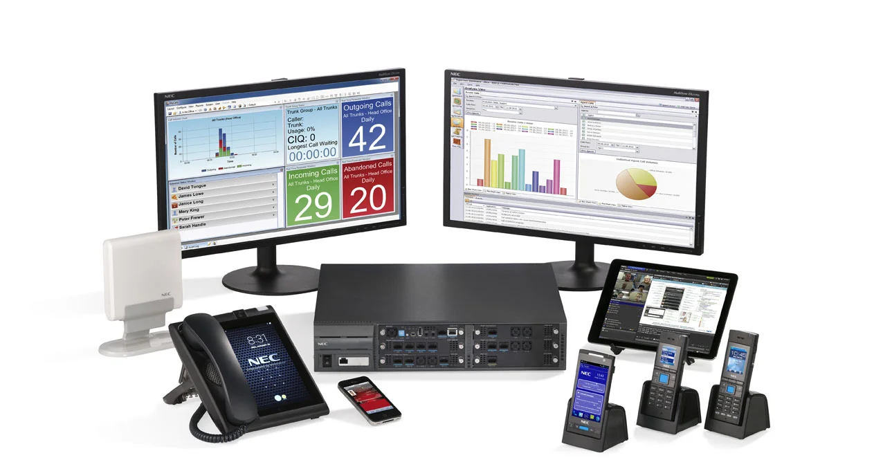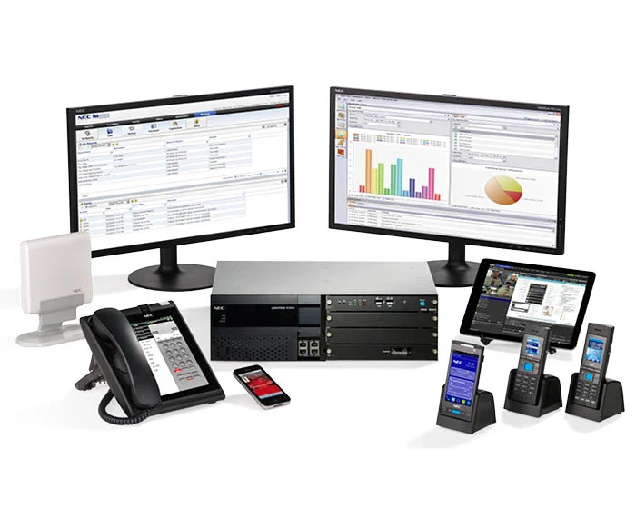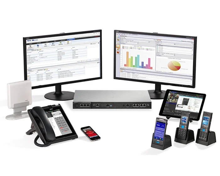 NEC geniş terminal ürün ailesi; dokunmatik ekranlı UT880, masaüstü IP telefonlar, DECT telsizler ve Wi-Fi el terminalleri ile her ortama uygun iletişim cihazları.